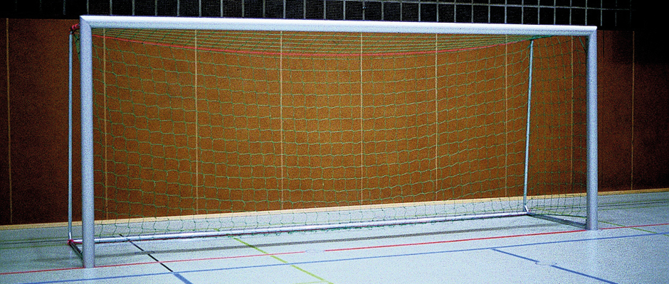 Artikel Nr. 50340 JOBASPORT®-Hallensoccer Tor Die Hallensoccer-Tore aus bewährten Ovalprofil 120x100mm oder aus Profil 80x80mm. Mehr Spaß bei Hallenturnieren durch diese Tore, Göße 5x2m, freistehend, Latte/Pfosten technisch eloxiert, Netzbügel aus Aluminium-Rundrohr. Die Netzbügel lassen sich, wenn die Tore nicht benötigt werden, anklappen, so können die Tore beispielsweise platzsparend an der Wand befestigt und aufbewahrt werden.